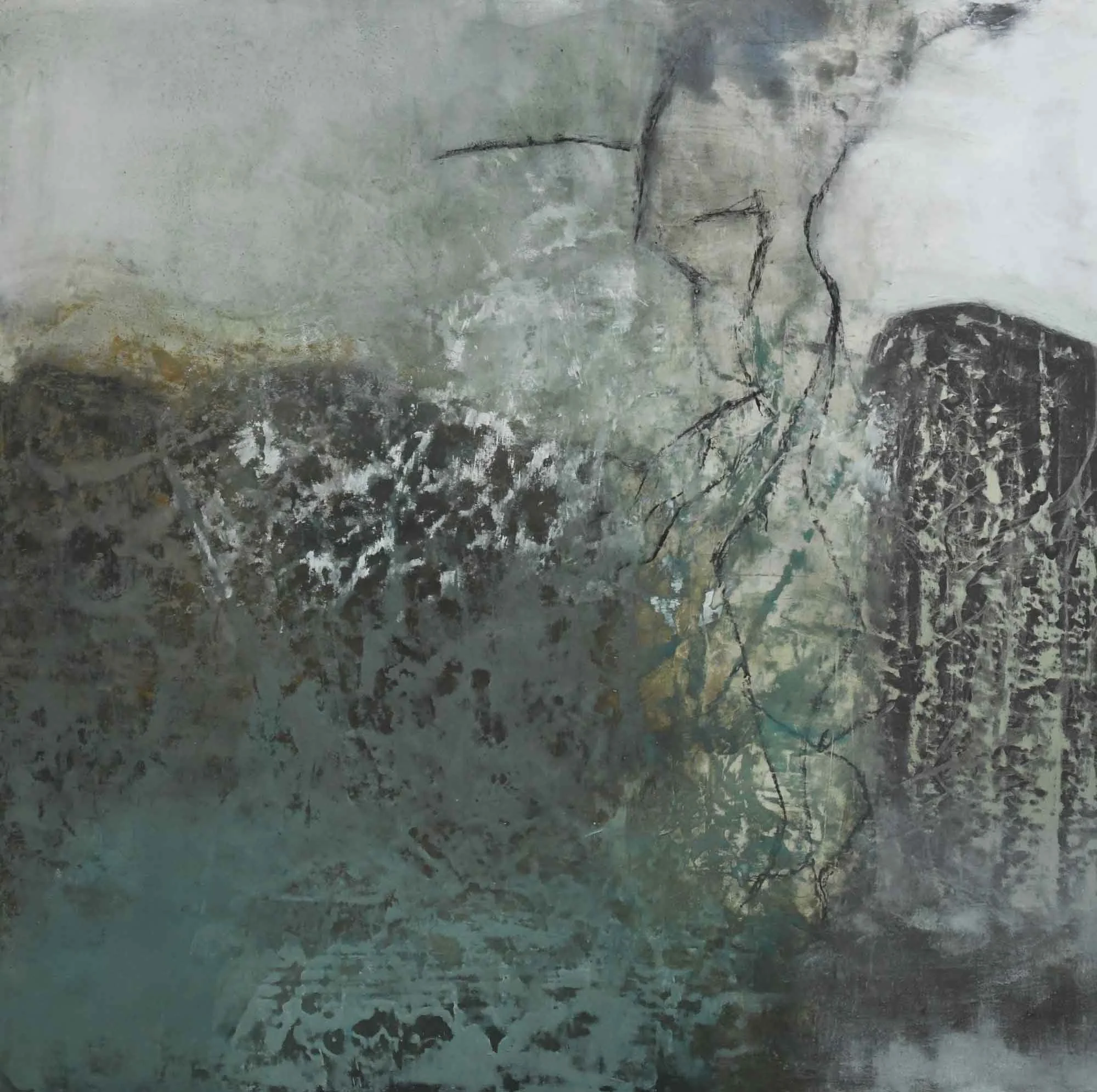 Honoring the quiet beauty of the unplanned. Teal, browns, and whites create a sense of mystery.